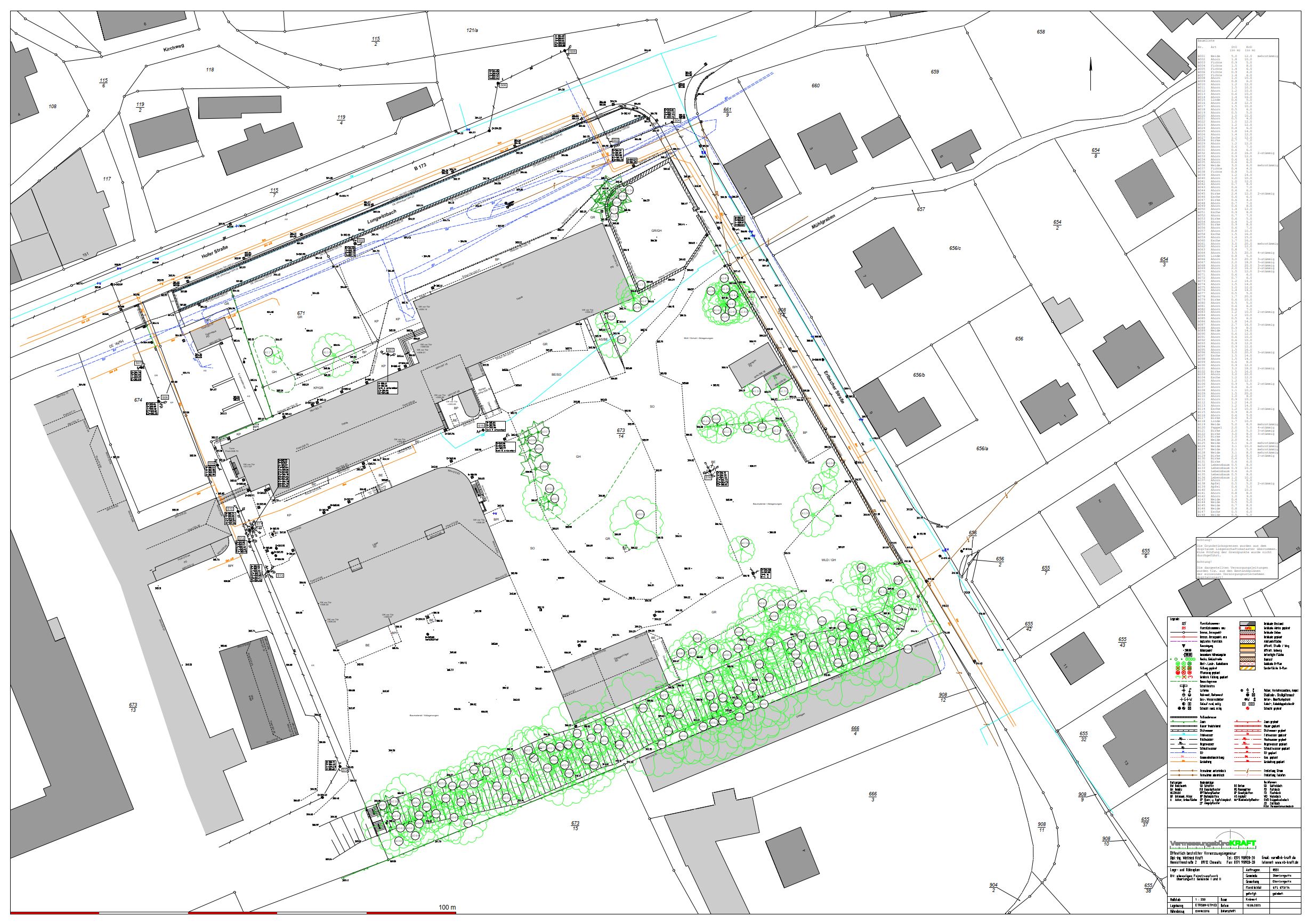 Aufmessung der neuverlegten Medien Beleuchtung, Fernwärme, Gas, Strom und Trinkwasser zur Erstellung von Bestandsplänen